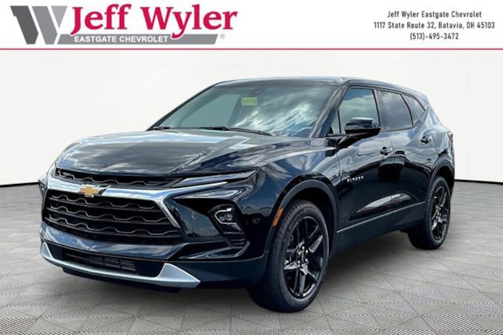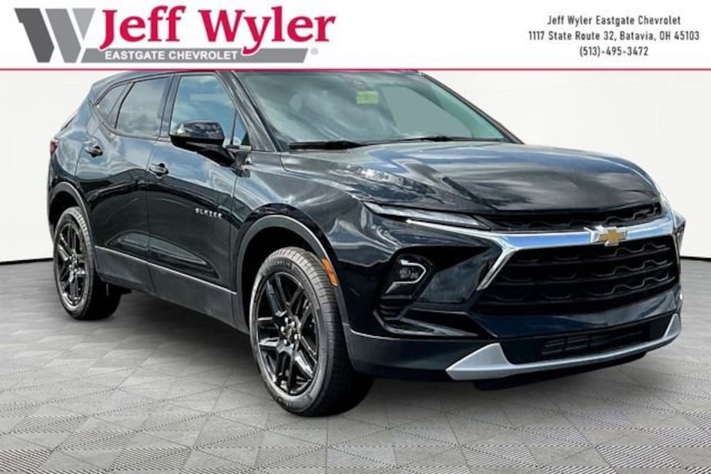 Priced below KBB Fair Purchase Price! Black 2025 Chevrolet Blazer LT 2.0L Turbocharged FWD 9-Speed Automatic with Overdrive 22/29 City/Highway MPG Jeff Wyler Eastgate Auto Mall is excited to offer this good-looking 2025 Chevrolet Blazer LT in Black. Well equipped with: Preferred Equipment Group 2LT, 170 Amp Alternator, 3.47 Final Drive Axle Ratio, 4-Way Manual Front Passenger Seat Adjuster, 4-Wheel Disc Brakes, 6 Speakers, 6-Speaker Audio System Feature, 8-Way Power Driver Seat Adjuster, ABS brakes, Air Conditioning, Alloy wheels, AM/FM radio: SiriusXM with 360L, Apple CarPlay/Android Auto, Auto High-beam Headlights, Automatic temperature control, Brake assist, Bumpers: body-color, Child-Seat-Sensing Airbag, Compass, Delay-off headlights, Driver door bin, Driver vanity mirror, Dual front impact airbags, Dual front side impact airbags, Electronic Stability Control, Emergency communication system: OnStar and Chevrolet connected services capable, Four wheel independent suspension, Front anti-roll bar, Front Bucket Seats, Front Center Armrest, Front dual zone A/C, Front reading lights, Fully automatic headlights, Heated door mirrors, Heated Driver and Front Passenger Seats, Heated front seats, Illuminated entry, Knee airbag, Leather Shift Knob, Low tire pressure warning, Occupant sensing airbag, Outside temperature display, Overhead airbag, Overhead console, Panic alarm, Passenger door bin, Passenger vanity mirror, Power door mirrors, Power Driver Lumbar Control, Power driver seat, Power steering, Power windows, Premium audio system: Chevrolet Infotainment 3 Plus, Premium Cloth Seat Trim, Radio data system, Radio: Chevrolet Infotainment 3 Plus System, Rear anti-roll bar, Rear reading lights, Rear seat center armrest, Rear window defroster, Rear window wiper, Remote keyless entry, Ride and Handling Suspension, Security system, SiriusXM with 360L, Speed control, Speed-sensing steering, Split folding rear seat, Spoiler, Steering wheel mounted audio controls, Stop-Start Engine Control System, Tachometer, Telescoping steering wheel, Tilt steering wheel, Traction control, Trip computer, Variably intermittent wipers, Voltmeter, Wheels: : 18 Grazen Metallic Aluminum, and Wheels: : 20 Gloss Black Aluminum. 22/29 City/Highway MPG Price includes: $1000 - Chevrolet Consumer Cash Program. Exp. 04/30/2026