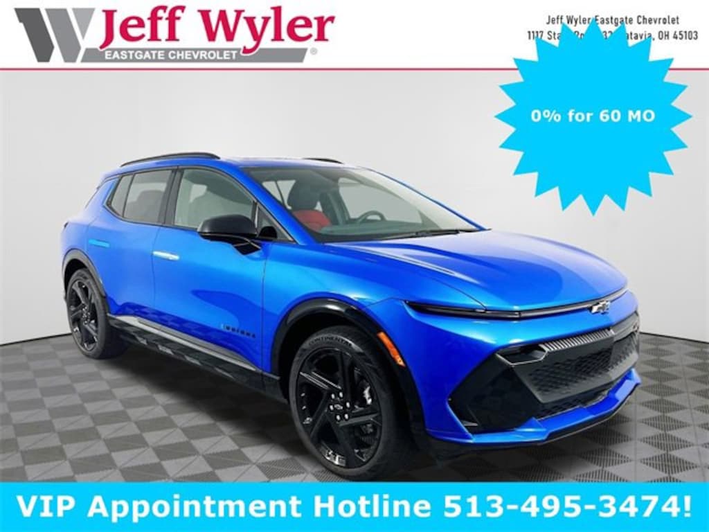 Priced below KBB Fair Purchase Price! Riptide Blue Metallic 2025 Chevrolet Equinox EV RS Electric Drive Unit FWD 1-Speed Automatic Jeff Wyler Eastgate Auto Mall is pleased to offer this great 2025 Chevrolet Equinox EV RS in Riptide Blue Metallic. Well equipped with: Preferred Equipment Group 2RS, 4-Wheel Disc Brakes, 6 Speakers, 6-Speaker Audio System Feature, 6-Way Manual Front Passenger Seat Adjuster, 8-Way Power Driver Seat Adjuster, ABS brakes, Air Conditioning, Alloy wheels, AM/FM radio: SiriusXM with 360L, Auto High-beam Headlights, Auto-dimming Rear-View mirror, Automatic temperature control, Brake assist, Bumpers: body-color, Compass, Delay-off headlights, Driver door bin, Driver vanity mirror, Dual front impact airbags, Dual front side impact airbags, Dual Level Charge Cord, Electronic Stability Control, Emergency communication system: OnStar and Chevrolet connected services capable, Evotex Seat Trim, Four wheel independent suspension, Front anti-roll bar, Front Bucket Seats, Front Center Armrest, Front reading lights, Fully automatic headlights, Heated door mirrors, Heated front seats, Heated steering wheel, Illuminated entry, Knee airbag, Low tire pressure warning, Navigation system: Google built-in compatibility (select service plan required, terms and limitations apply), Occupant sensing airbag, Outside temperature display, Overhead airbag, Overhead console, Panic alarm, Passenger door bin, Passenger vanity mirror, Power door mirrors, Power Driver Lumbar Control, Power driver seat, Power Dual Panel Panoramic Sliding Sunroof, Power Liftgate, Power steering, Power windows, Radio: 17.7 Diagonal Advanced Color LCD Display, Rear anti-roll bar, Rear reading lights, Rear seat center armrest, Rear window defroster, Rear window wiper, Remote keyless entry, Security system, Speed control, Split folding rear seat, Spoiler, Sport steering wheel, Steering wheel mounted audio controls, Telescoping steering wheel, Tilt steering wheel, Traction control, Trip computer, Turn signal indicator mirrors, Variably intermittent wipers, and Wheels: 21 Black Painted Aluminum. Price includes: $3000 - Chevrolet Consumer Cash Program. Exp. 01/02/2026
