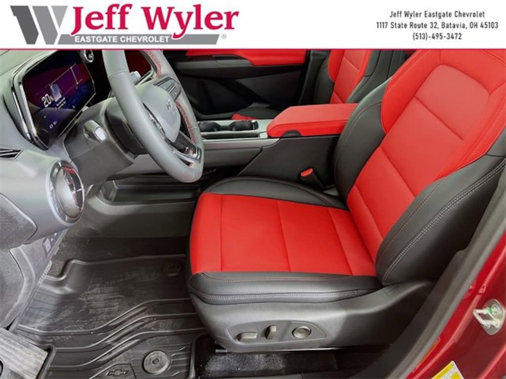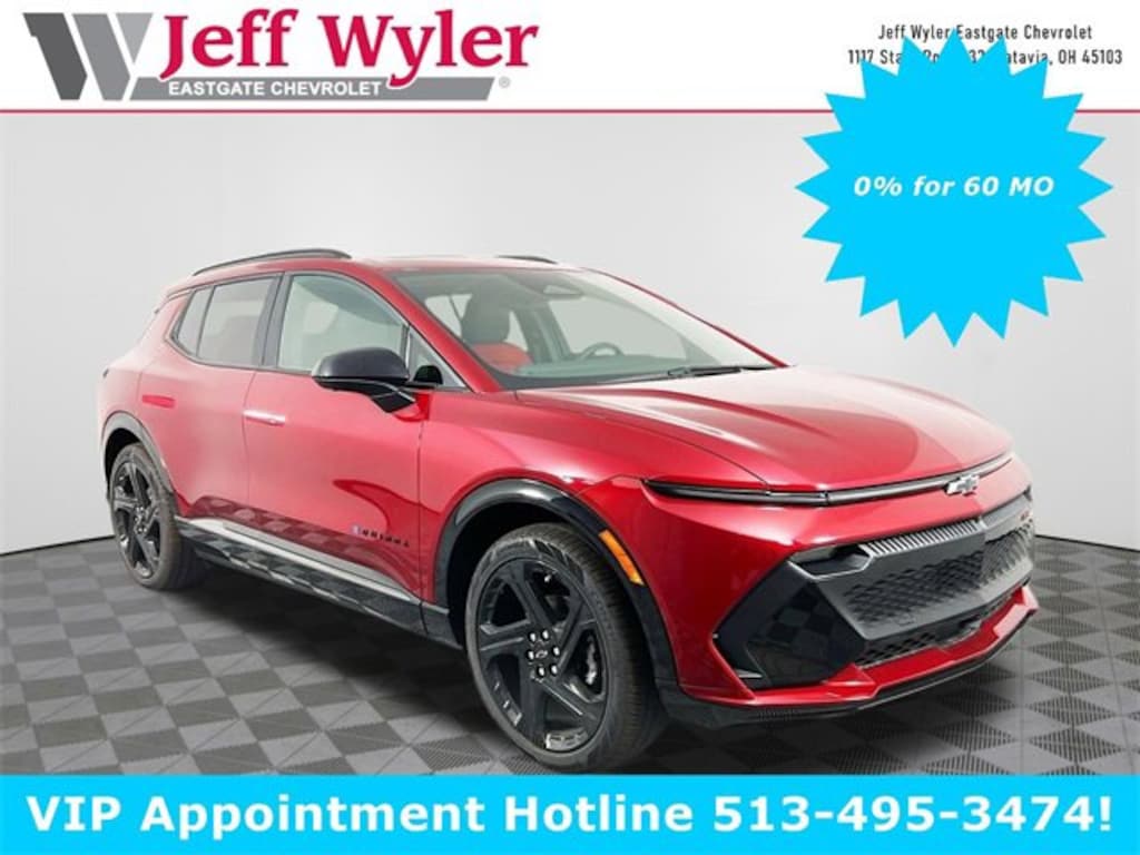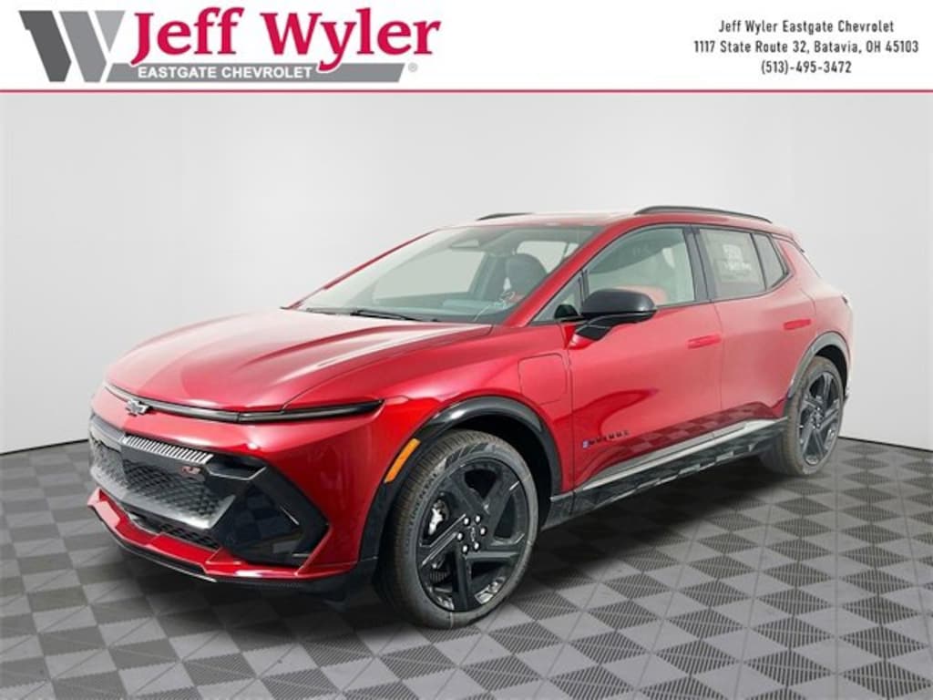 Priced below KBB Fair Purchase Price! Radiant Red Tintcoat 2025 Chevrolet Equinox EV RS Electric Drive Unit FWD 1-Speed Automatic Jeff Wyler Eastgate Auto Mall is pleased to offer this stunning-looking 2025 Chevrolet Equinox EV RS in Radiant Red Tintcoat. Well equipped with: Preferred Equipment Group 2RS, 4-Wheel Disc Brakes, 6 Speakers, 6-Speaker Audio System Feature, 6-Way Manual Front Passenger Seat Adjuster, 8-Way Power Driver Seat Adjuster, ABS brakes, Air Conditioning, Alloy wheels, AM/FM radio: SiriusXM with 360L, Auto High-beam Headlights, Auto-dimming Rear-View mirror, Automatic temperature control, Brake assist, Bumpers: body-color, Compass, Delay-off headlights, Driver door bin, Driver vanity mirror, Dual front impact airbags, Dual front side impact airbags, Dual Level Charge Cord, Electronic Stability Control, Emergency communication system: OnStar and Chevrolet connected services capable, Evotex Seat Trim, Four wheel independent suspension, Front anti-roll bar, Front Bucket Seats, Front Center Armrest, Front reading lights, Fully automatic headlights, Heated door mirrors, Heated front seats, Heated steering wheel, Illuminated entry, Knee airbag, Low tire pressure warning, Navigation system: Google built-in compatibility (select service plan required, terms and limitations apply), Occupant sensing airbag, Outside temperature display, Overhead airbag, Overhead console, Panic alarm, Passenger door bin, Passenger vanity mirror, Power door mirrors, Power Driver Lumbar Control, Power driver seat, Power Dual Panel Panoramic Sliding Sunroof, Power Liftgate, Power steering, Power windows, Radio: 17.7 Diagonal Advanced Color LCD Display, Rear anti-roll bar, Rear reading lights, Rear seat center armrest, Rear window defroster, Rear window wiper, Remote keyless entry, Security system, Speed control, Split folding rear seat, Spoiler, Sport steering wheel, Steering wheel mounted audio controls, Telescoping steering wheel, Tilt steering wheel, Traction control, Trip computer, Turn signal indicator mirrors, Variably intermittent wipers, and Wheels: 21 Black Painted Aluminum. Price includes: $3000 - Chevrolet Consumer Cash Program. Exp. 01/02/2026