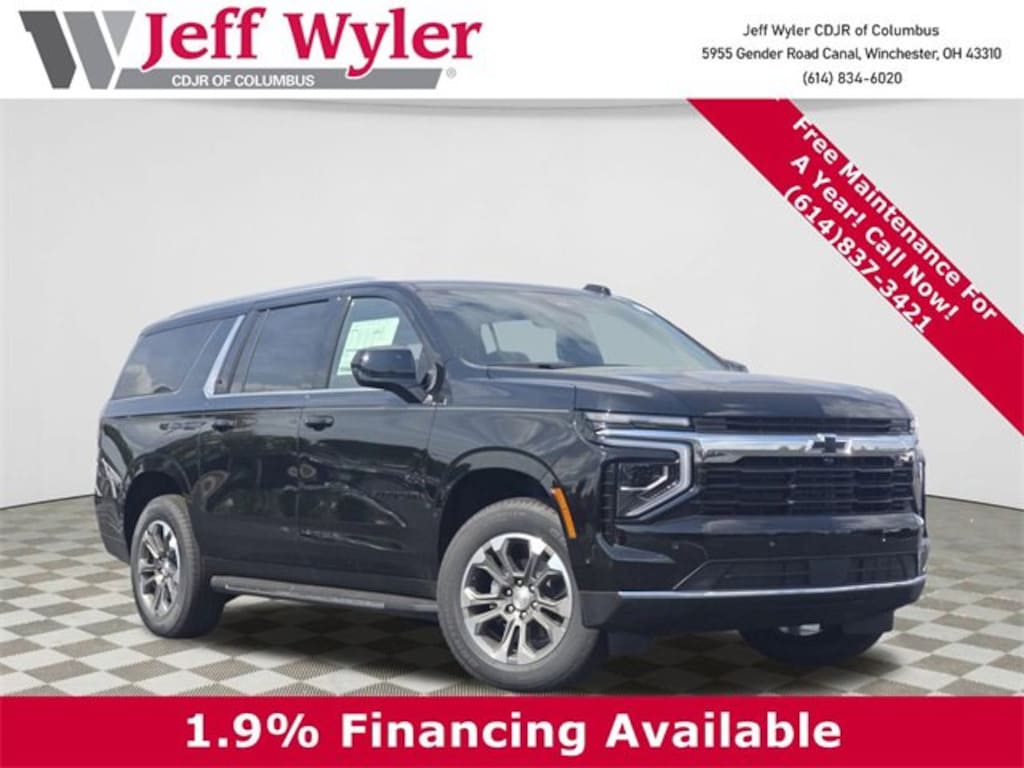 Jeff Wyler Columbus Auto Mall is very proud to offer this outstanding 2025 Chevrolet Suburban LS in Black. Well equipped with: Advanced Trailering Package (Blind Zone Steering Assist with Trailering, Hitch View with Pan/Zoom Image Adjustment, and Smart Trailer Integration Indicator), All-Weather Liner Protection Package (1st and 2nd Rows All-Weather Floor Liners, 3rd Row All-Weather Floor Liners, and All-Weather Cargo Mat), Dark Essentials Package (Black Name Plates and Front and Rear Black Bowtie Emblems), Max Trailering Package (2-Speed Active Electronic AutoTrac Transfer Case, Extra Capacity Cooling System, Hill Descent Control, and Integrated Trailer Brake Controller), Preferred Equipment Group 1LS, 2-Way Driver Power Lumbar Seat Adjuster, 2-Way Front Passenger Power Lumbar Seat Adjuster, 3.23 Rear Axle Ratio, 3rd row seats: split-bench, 4-Wheel Disc Brakes, 6 Speakers, 6-Speaker Audio System, 6-Way Power Front Passenger Seat Adjuster, 8-Way Power Driver Seat Adjuster, ABS brakes, Air Conditioning, Alloy wheels, AM/FM radio: SiriusXM with 360L, Apple CarPlay/Android Auto, Auto High-beam Headlights, Automatic temperature control, Black Mirror Caps, Brake assist, Bumpers: body-color, Compass, Delay-off headlights, Driver door bin, Driver vanity mirror, Dual front impact airbags, Dual front side impact airbags, Electronic Stability Control, Emergency communication system: OnStar Services capable, Exterior Parking Camera Rear, Four wheel independent suspension, Front anti-roll bar, Front Bucket Seats, Front Center Armrest, Front dual zone A/C, Front reading lights, Fully automatic headlights, Heated door mirrors, Illuminated entry, Low tire pressure warning, Navigation system: Google built-in compatibility (select service plan required, terms and limitations apply), Occupant sensing airbag, Outside temperature display, Overhead airbag, Overhead console, Panic alarm, Passenger door bin, Passenger vanity mirror, Power door mirrors, Power driver seat, Power passenger seat, Power steering, Power windows, Premium Cloth Seat Trim, Premium Smooth Ride Suspension, Radio data system, Radio: 17.7 Diagonal Advanced Color LCD Display, Rain sensing wipers, Rear air conditioning, Rear anti-roll bar, Rear reading lights, Rear seat center armrest, Rear window defroster, Rear window wiper, Remote keyless entry, Security system, SiriusXM with 360L Trial Subscription, Speed control, Speed-sensing steering, Split folding rear seat, Spoiler, Steering wheel mounted audio controls, Tachometer, Telescoping steering wheel, Tilt steering wheel, Traction control, Trip computer, Variably intermittent wipers, Voltmeter, Wheels: 18 x 8.5 Bright Silver Painted Aluminum, Wheels: 20 x 9 Machined Aluminum, and Wireless Apple CarPlay/Wireless Android Auto.Wyler Family First Package Includes: NanoCure Appearance Protection: Exterior & Interior Chemical Sealant Applied to Protect Against Environmental Hazards (7 Year Warranty Coverage). Pulse- Rear End Collision Avoidance System Theft Deterrent Strategy gives you 5 Years of Coverage against vehicle theft, Offering up to a $5,000 benefit. Price does not include Tax, Title, License and Documentary Fee$1500 - GM Insurance Replacement Vehicle Targeted Private Offer. Exp. 01/02/2026 $500 - GM Military Cash Allowance Program. Exp. 01/02/2026 $500 - GM Rewards Card Sales Sign Up and Spend Offer. Exp. 01/02/2026