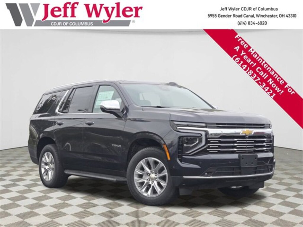 Jeff Wyler Columbus Auto Mall is delighted to offer this good-looking 2025 Chevrolet Tahoe Premier in Dark Ash Metallic. Well equipped with: License Plate Front Mounting Package, Preferred Equipment Group 1LZ (1st and 2nd Row Color-Keyed Carpeted Floor Mats, 20 x 9 Polished Aluminum Wheels, 3-Spoke Wrapped Steering Wheel, 3rd Row 60/40 Power-Folding Split-Bench Seat, Auto-Dimming Inside Rear-View Mirror, Bose 10-Speaker Centerpoint Surround Audio System Feature, Bright Front and Rear Door Sill Plates, Chrome Door Handles with Body-Color Strip, Color-Keyed Carpeting Floor Covering, Dual Exhaust System, Floor Console, Front Bucket Seats, Front LED Fog Lamps, Front Pedestrian and Bicyclist Braking, Frontal Driver and Outboard Passenger Airbags, Heated 2nd Row Outboard Seats, Heated Steering Wheel, LED Headlamps with LED Daytime Running Lamps, LED Tail Lamps, Magnetic Ride Control Suspension, Memory Settings, Outside Heated Power-Adjustable Mirrors, Power Release 2nd Row Bucket Seats, Power Tilt and Telescopic Steering Column, Rear Power Liftgate, Remote Start, SiriusXM with 360L Trial Subscription, Universal Home Remote, and Wireless Phone Charging), 4WD, Jet Black Sky Gray Leather, 10 Speakers, 3.23 Rear Axle Ratio, 3rd row seats: split-bench, 4-Way Power Driver Lumbar Seat Adjuster, 4-Way Power Front Passenger Lumbar Seat Adjuster, 4-Wheel Disc Brakes, 8-Way Power Driver Seat Adjuster, 8-Way Power Front Passenger Seat Adjuster, ABS brakes, Adaptive suspension, Air Conditioning, Alloy wheels, AM/FM radio: SiriusXM with 360L, Apple CarPlay/Android Auto, Auto High-beam Headlights, Auto-dimming door mirrors, Auto-dimming Rear-View mirror, Auto-leveling suspension, Automatic temperature control, Brake assist, Bumpers: body-color, Compass, Delay-off headlights, Driver and Front Passenger Heated and Ventilated Seats, Driver door bin, Driver vanity mirror, Dual front impact airbags, Dual front side impact airbags, Electronic Stability Control, Emergency communication system: OnStar and Chevrolet connected services capable, Exterior Parking Camera Rear, Four wheel independent suspension, Front anti-roll bar, Front Center Armrest, Front dual zone A/C, Front fog lights, Front reading lights, Fully automatic headlights, Garage door transmitter, Heated door mirrors, Heated Driver and Front Passenger Seats, Heated front seats, Heated rear seats, Heated steering wheel, Illuminated entry, Low tire pressure warning, Memory seat, Navigation system: Google built-in compatibility (select service plan required, terms and limitations apply), Occupant sensing airbag, Outside temperature display, Overhead airbag, Overhead console, Panic alarm, Passenger door bin, Passenger vanity mirror, Perforated Leather Seat Trim, Power door mirrors, Power driver seat, Power Liftgate, Power passenger seat, Power steering, Power windows, Premium audio system: Chevrolet Infotainment 3 Premium, Radio data system, Radio: 17.7 Diagonal Advanced Color LCD Display, Rain sensing wipers, Rear air conditioning, Rear anti-roll bar, Rear reading lights, Rear window defroster, Rear window wiper, Remote keyless entry, Security system, Speed control, Speed-sensing steering, Split folding rear seat, Spoiler, Steering wheel memory, Steering wheel mounted audio controls, Tachometer, Telescoping steering wheel, Tilt steering wheel, Traction control, Trip computer, Turn signal indicator mirrors, Variably intermittent wipers, Ventilated front seats, and Voltmeter.Wyler Family First Package Includes: NanoCure Appearance Protection: Exterior & Interior Chemical Sealant Applied to Protect Against Environmental Hazards (7 Year Warranty Coverage). Pulse- Rear E Price does not include Tax, Title, License and Documentary Fee$1000 - Chevrolet Consumer Cash Program. Exp. 01/02/2026 $1500 - GM Insurance Replacement Vehicle Targeted Private Offer. Exp. 01/02/2026 $500 - GM Military Cash Allowance Program. Exp. 01/02/2026 $500 - GM Rewards Card Sales Sign Up and Spend Offer. Exp. 01/02/2026