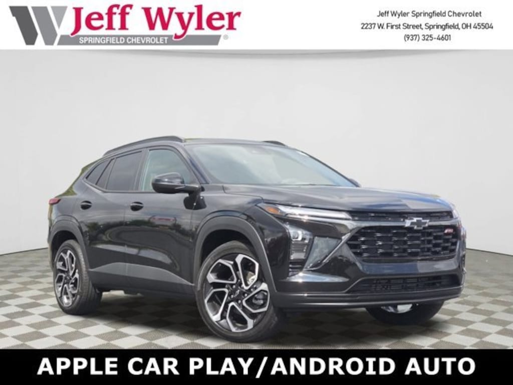 Jeff Wyler Springfield Auto Mall is pleased to offer this good-looking 2025 Chevrolet Trax 2RS in Mosaic Black Metallic. Well equipped with: Preferred Equipment Group 2RS, 2-Way Adjustable Front Head Restraints, 2-Way Power Driver Lumbar Seat Adjuster, 3.50 Final Drive Axle Ratio, 4-Way Manual Front Passenger Seat Adjuster, 4-Wheel Disc Brakes, 6 Speakers, 6-Speaker Audio System Feature, 8-Way Power Driver Seat Adjuster, ABS brakes, Air Conditioning, Alloy wheels, AM/FM radio: SiriusXM, Auto High-beam Headlights, Automatic temperature control, Brake assist, Bumpers: body-color, Compass, Delay-off headlights, Driver door bin, Driver vanity mirror, Dual front impact airbags, Dual front side impact airbags, Electronic Stability Control, Emergency communication system: OnStar One Essentials, Evotex Seat Trim, Exterior Parking Camera Rear, Front & Rear All-Weather Floor Liners (LPO), Front anti-roll bar, Front Bucket Seats, Front Center Armrest, Front reading lights, Front wheel independent suspension, Fully automatic headlights, Heated door mirrors, Heated Driver & Front Passenger Seats, Heated front seats, Heated steering wheel, Illuminated entry, Leather steering wheel, Low tire pressure warning, Occupant sensing airbag, Outside temperature display, Overhead airbag, Overhead console, Panic alarm, Passenger door bin, Passenger vanity mirror, Power door mirrors, Power steering, Power windows, Premium audio system: Chevrolet Infotainment 3, Radio data system, Radio: AM/FM Stereo Audio System, Rear window defroster, Rear window wiper, Remote keyless entry, Security system, SiriusXM Trial Subscription, Speed control, Split folding rear seat, Spoiler, Sport steering wheel, Steering wheel mounted audio controls, Tachometer, Telescoping steering wheel, Tilt steering wheel, Traction control, Trip computer, Variably intermittent wipers, and Wheels: 19 Black-Painted Machined Aluminum. 28/32 City/Highway MPG 28/32 City/Highway MPG Awards: