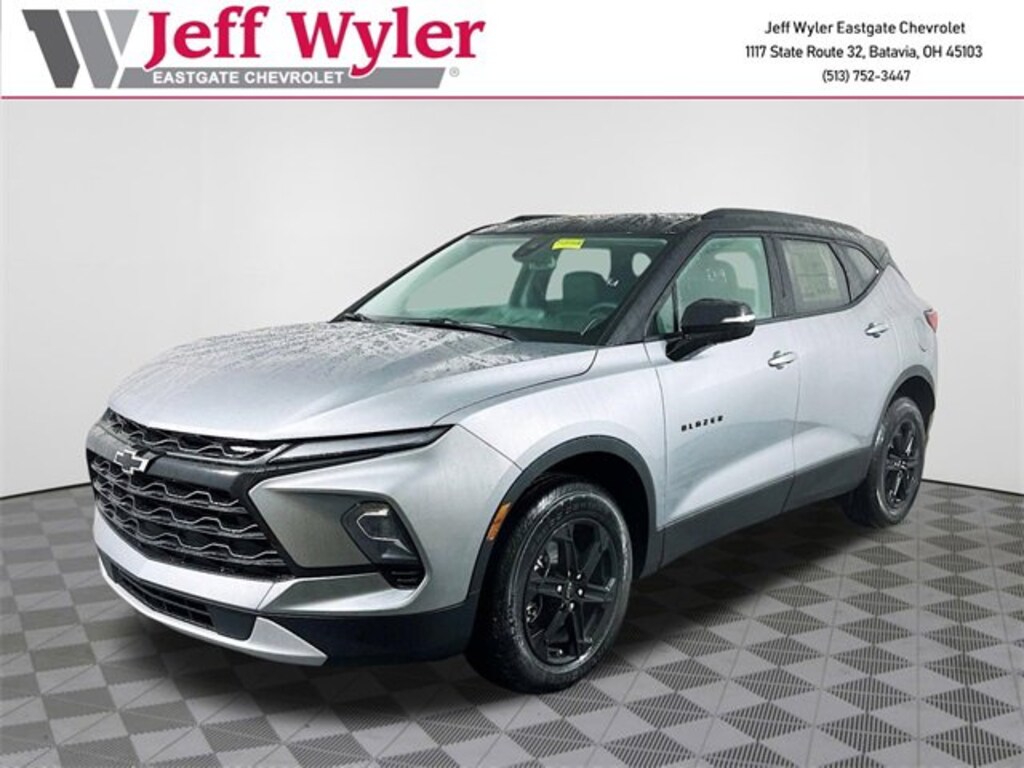 Sterling Gray Metallic 2026 Chevrolet Blazer LT 2.0L Turbocharged AWD 9-Speed Automatic with Overdrive 22/29 City/Highway MPG Jeff Wyler Eastgate Auto Mall is pumped up to offer this terrific-looking 2026 Chevrolet Blazer LT in Sterling Gray Metallic. Well equipped with: Midnight/Sport Edition, 3.47 Final Drive Ratio, 4-Wheel Disc Brakes, 6 Speakers, 6-Speaker Audio System Feature, 6-Way Power Front Passenger Seat Adjuster, 8-Way Power Driver Seat Adjuster, ABS brakes, Air Conditioning, Alloy wheels, AM/FM radio: SiriusXM with 360L, Apple CarPlay/Android Auto, Auto High-beam Headlights, Auto-dimming door mirrors, Auto-dimming Rear-View mirror, Automatic temperature control, Black 2-Tone Roof, Brake assist, Bumpers: body-color, Child-Seat-Sensing Airbag, Compass, Delay-off headlights, Driver door bin, Driver vanity mirror, Dual front impact airbags, Dual front side impact airbags, Electronic Stability Control, Emergency communication system: OnStar and Chevrolet connected services capable, Four wheel independent suspension, Front anti-roll bar, Front Bucket Seats, Front Center Armrest, Front dual zone A/C, Front reading lights, Fully automatic headlights, Garage door transmitter, Heated door mirrors, Heated front seats, Illuminated entry, Knee airbag, Leather Shift Knob, Leather steering wheel, Low tire pressure warning, Occupant sensing airbag, Outside temperature display, Overhead airbag, Overhead console, Panic alarm, Passenger door bin, Passenger vanity mirror, Perforated Leather-Appointed Seat Trim, Power door mirrors, Power Driver Lumbar Control, Power driver seat, Power Liftgate, Power passenger seat, Power steering, Power windows, Premium audio system: Chevrolet Infotainment 3 Plus, Radio data system, Radio: Chevrolet Infotainment 3 Plus System, Rear anti-roll bar, Rear reading lights, Rear seat center armrest, Rear window defroster, Rear window wiper, Remote keyless entry, Security system, Speed control, Speed-sensing steering, Split folding rear seat, Spoiler, Steering wheel mounted audio controls, Stop-Start Engine Control System, Tachometer, Telescoping steering wheel, Tilt steering wheel, Traction control, Trip computer, Turn signal indicator mirrors, Variably intermittent wipers, Voltmeter, and Wireless Apple CarPlay/Wireless Android Auto. 22/29 City/Highway MPG