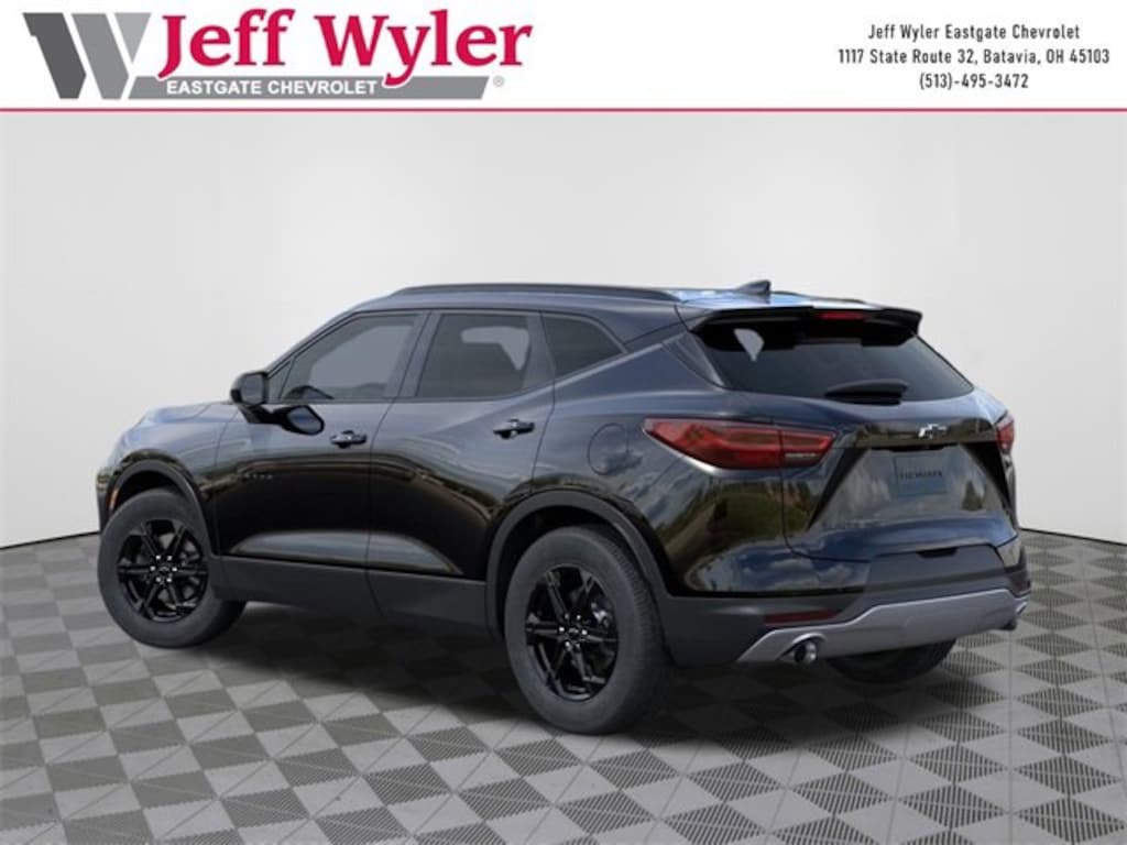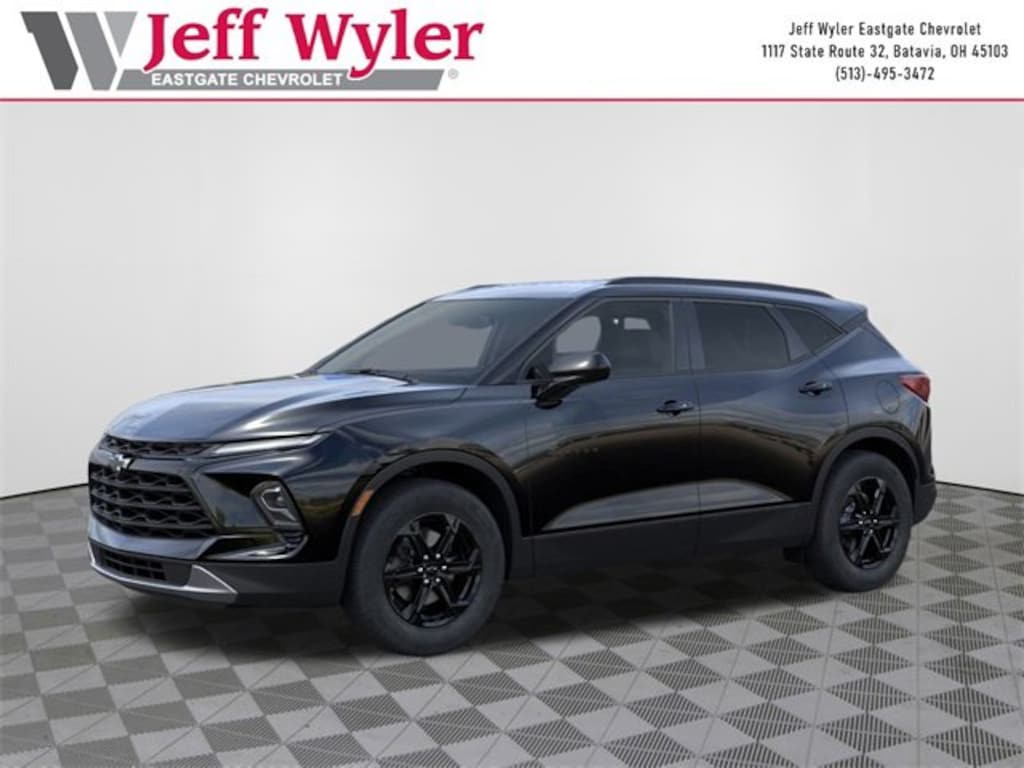 Black 2026 Chevrolet Blazer LT 2.0L Turbocharged AWD 9-Speed Automatic with Overdrive 22/29 City/Highway MPG Jeff Wyler Eastgate Auto Mall is excited to offer this good-looking 2026 Chevrolet Blazer LT in Black. Well equipped with: Convenience Package (Adaptive Cruise Control, Black Roof-Mounted Side Rails, Enhanced Automatic Emergency Braking, Inside Rear-View Auto-Dimming Mirror, Rear Power Programmable Liftgate, Universal Home Remote, and Wireless Charging), Midnight/Sport Edition, 3.47 Final Drive Ratio, 4-Way Manual Front Passenger Seat Adjuster, 4-Wheel Disc Brakes, 6 Speakers, 6-Speaker Audio System Feature, 8-Way Power Driver Seat Adjuster, ABS brakes, Air Conditioning, Alloy wheels, AM/FM radio: SiriusXM with 360L, Apple CarPlay/Android Auto, Auto High-beam Headlights, Automatic temperature control, Brake assist, Bumpers: body-color, Child-Seat-Sensing Airbag, Compass, Delay-off headlights, Driver door bin, Driver vanity mirror, Dual front impact airbags, Dual front side impact airbags, Electronic Stability Control, Emergency communication system: OnStar and Chevrolet connected services capable, Four wheel independent suspension, Front anti-roll bar, Front Bucket Seats, Front Center Armrest, Front dual zone A/C, Front reading lights, Fully automatic headlights, Heated door mirrors, Heated front seats, Illuminated entry, Knee airbag, Leather Shift Knob, Low tire pressure warning, Occupant sensing airbag, Outside temperature display, Overhead airbag, Overhead console, Panic alarm, Passenger door bin, Passenger vanity mirror, Power door mirrors, Power Driver Lumbar Control, Power driver seat, Power steering, Power windows, Premium audio system: Chevrolet Infotainment 3 Plus, Premium Cloth Seat Trim, Radio data system, Radio: Chevrolet Infotainment 3 Plus System, Rear anti-roll bar, Rear reading lights, Rear seat center armrest, Rear window defroster, Rear window wiper, Remote keyless entry, Security system, Speed control, Speed-sensing steering, Split folding rear seat, Spoiler, Steering wheel mounted audio controls, Stop-Start Engine Control System, Tachometer, Telescoping steering wheel, Tilt steering wheel, Traction control, Trip computer, Variably intermittent wipers, Voltmeter, and Wireless Apple CarPlay/Wireless Android Auto. 22/29 City/Highway MPG