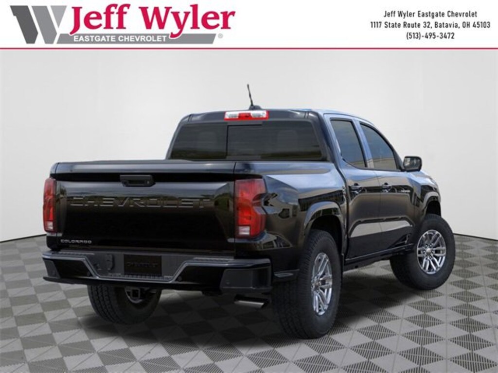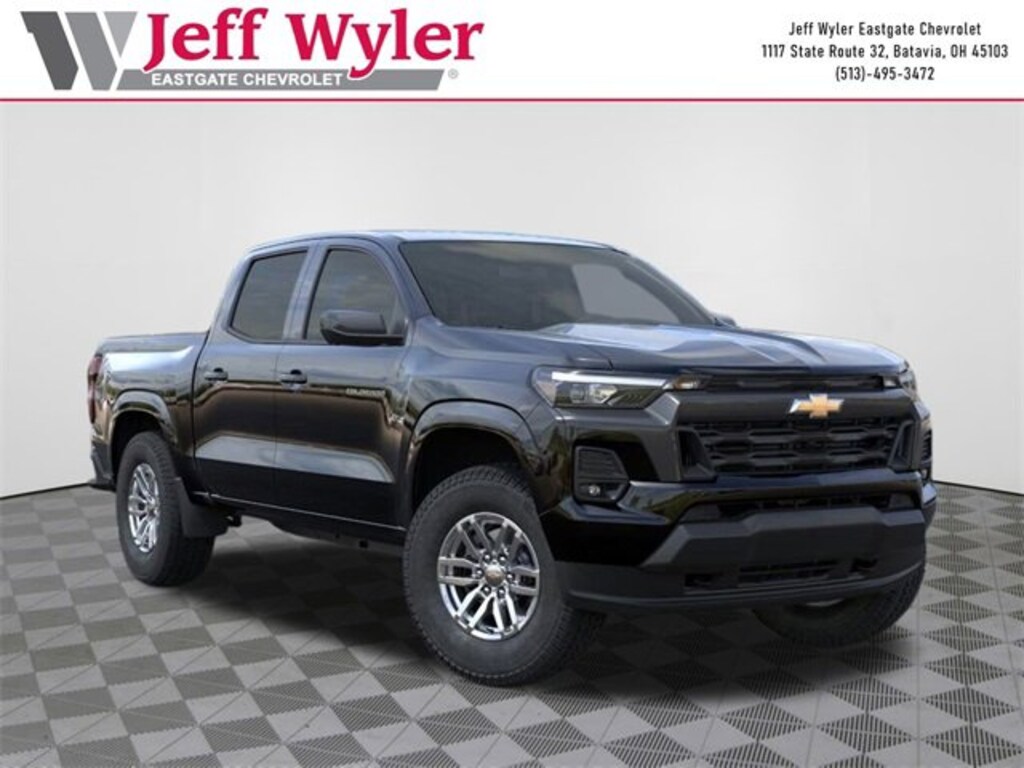 Black 2026 Chevrolet Colorado LT 2.7L I4 Turbocharged DOHC 16V LEV3-ULEV50 310hp 4WD 8-Speed Automatic 18/23 City/Highway MPG Jeff Wyler Eastgate Auto Mall is pleased to offer this attractive 2026 Chevrolet Colorado LT in Black. Well equipped with: Advanced Trailering Package (Automatic Locking Rear Differential, Blind Zone Steering Assist with Trailering, and Trailering App), Heavy-Duty Trailering Package (Integrated Trailer Brake Controller), LT Convenience Package (120-Volt Bed-Mounted Power Outlet, 120-Volt Power Outlet, Driver Seatback Map Pocket, Dual Rear USB Ports (charge Only), Evotex Seat Trim, Front LED Fog Lamps, Heated Steering Wheel, LED Daytime Running Lamps, LED Headlamps, LED Stop Tail Lamp, Rear Center Armrest, and Wireless Phone Charging), Technology Package (Adaptive Cruise Control, HD Surround Vision, and Rear Pedestrian Alert), 1st and 2nd Row All-Weather Floor Liner, 220 Amp Alternator, 3.42 Rear Axle Ratio, 4-Way Manual Passenger Seat Adjuster, 4-Wheel Disc Brakes, 6 Speakers, 6-Speaker Audio System Feature, 8-Way Power Driver Seat Adjuster, ABS brakes, Air Conditioning, Alloy wheels, AM/FM radio: SiriusXM with 360L, Apple CarPlay/Android Auto, Auto High-beam Headlights, Auto-dimming Rear-View mirror, Automatic Emergency Braking, Automatic temperature control, Brake assist, Bumpers: body-color, Chevy Safety Assist, Cloth Seat Trim, Compass, Delay-off headlights, Driver and Front Passenger Heated Seats, Driver door bin, Driver vanity mirror, Dual front impact airbags, Dual front side impact airbags, Electronic Stability Control, Emergency communication system: OnStar, Following Distance Indicator, Forward Collision Alert, Front anti-roll bar, Front Bucket Seats, Front Center Armrest, Front dual zone A/C, Front Passenger Seatback Map Pocket, Front Pedestrian and Bicyclist Braking, Front reading lights, Front wheel independent suspension, Heated door mirrors, Heated front seats, Illuminated entry, IntelliBeam Automatic High Beam on/Off, Lane Keep Assist with Lane Departure Warning, Low tire pressure warning, Navigation System, Occupant sensing airbag, Outside temperature display, Overhead airbag, Overhead console, Panic alarm, Passenger door bin, Passenger vanity mirror, Power door mirrors, Power Driver Lumbar Control Seat Adjuster, Power driver seat, Power steering, Power windows, Radio data system, Radio: 11.3 Diagonal Advanced Color LCD Display, Rear reading lights, Rear step bumper, Rear window defroster, Remote keyless entry, Security system, SiriusXM with 360L Trial Subscription, Speed control, Speed-sensing steering, Split folding rear seat, Steering Wheel Mounted Audio Controls, Steering wheel mounted audio controls, Tachometer, Telescoping steering wheel, Tilt steering wheel, Traction control, Trip computer, Variably intermittent wipers, Wheels: 17 x 8 Argent Metallic Aluminum, and Wireless Phone Projection. Price includes: $1000 - Chevrolet Consumer Cash Program. Exp. 03/02/2026
