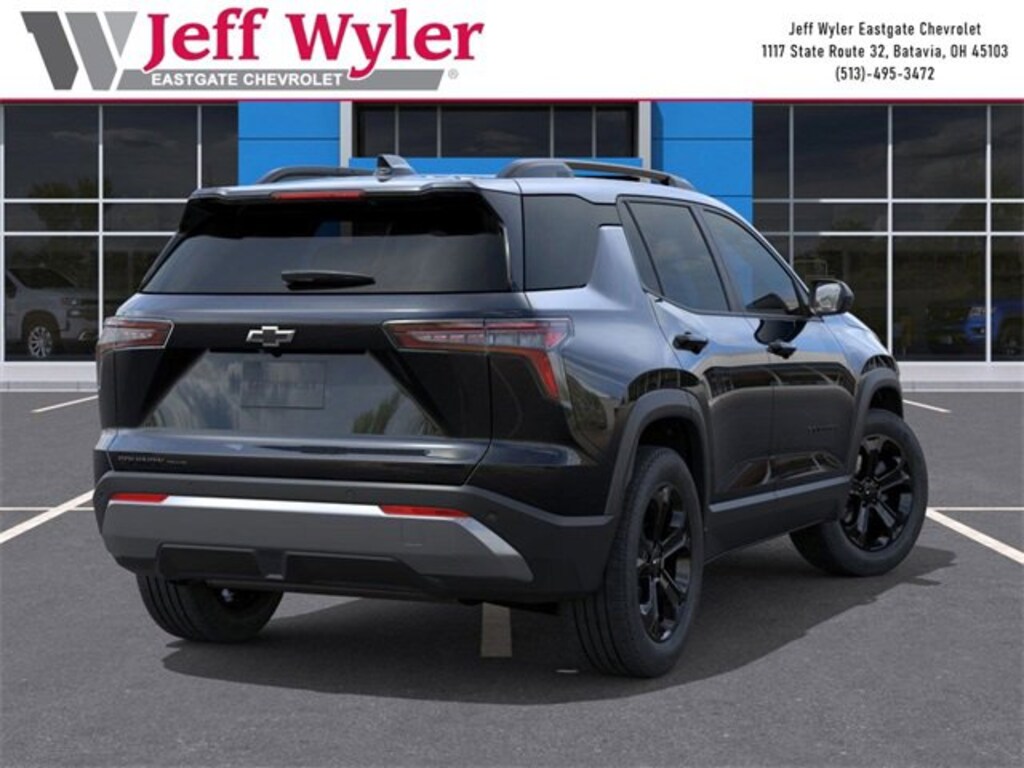 Black Metallic 2026 Chevrolet Equinox LT 1.5L DOHC AWD 8-Speed Automatic 25/29 City/Highway MPG Jeff Wyler Eastgate Auto Mall is pleased to offer this beautiful 2026 Chevrolet Equinox LT in Black Metallic. Well equipped with: Convenience Package II (2-Way Power Driver Lumbar Control Seat Adjuster, Autosense Hands-Free Programmable Power Liftgate, Cabin Humidity and Windshield Sensor, Driver 8-Way Power Seat Adjuster, Dual-Zone Automatic Climate Control, Evotex Seat Trim, Heated Wiper Park, Intermittent Front Rain-Sensing Wipers, Overhead Sunglass Storage, Programmable Universal Home Remote, and Wireless Phone Charging For Portable Devices), Midnight Edition (High Gloss Black Mirror Caps and Wheels: 19 Black Painted Aluminum), 3.47 Final Drive Axle Ratio, 4-Wheel Disc Brakes, 6 Speakers, ABS brakes, Air Conditioning, Alloy wheels, AM/FM radio: SiriusXM, Auto High-beam Headlights, Brake assist, Bumpers: body-color, Cloth Seat Trim, Compass, Delay-off headlights, Driver 6-Way Manual Seat Adjuster, Driver door bin, Driver vanity mirror, Dual front impact airbags, Dual front side impact airbags, Electronic Stability Control, Emergency communication system: OnStar and Chevrolet connected services capable, Four wheel independent suspension, Front anti-roll bar, Front Bucket Seats, Front Center Armrest, Front Passenger 4-Way Manual Seat Adjuster, Front reading lights, Fully automatic headlights, Heated door mirrors, Heated Driver and Front Passenger Seats, Heated front seats, Heated steering wheel, Illuminated entry, Low tire pressure warning, Navigation System, Occupant sensing airbag, Outside temperature display, Overhead airbag, Overhead console, Panic alarm, Passenger door bin, Passenger vanity mirror, Power door mirrors, Power steering, Power windows, Premium audio system: Chevrolet Infotainment 3, Radio data system, Radio: 11.3 Diagonal Advanced Color LCD Display, Rear anti-roll bar, Rear reading lights, Rear seat center armrest, Rear window defroster, Rear window wiper, Remote keyless entry, Security system, SiriusXM with 360L Trial Subscription, Speed control, Speed-sensing steering, Split folding rear seat, Spoiler, Steering wheel mounted audio controls, Tachometer, Telescoping steering wheel, Tilt steering wheel, Traction control, Trip computer, Variably intermittent wipers, and Wheels: 17 Grazen Metallic Machined-Face Aluminum. 25/29 City/Highway MPG