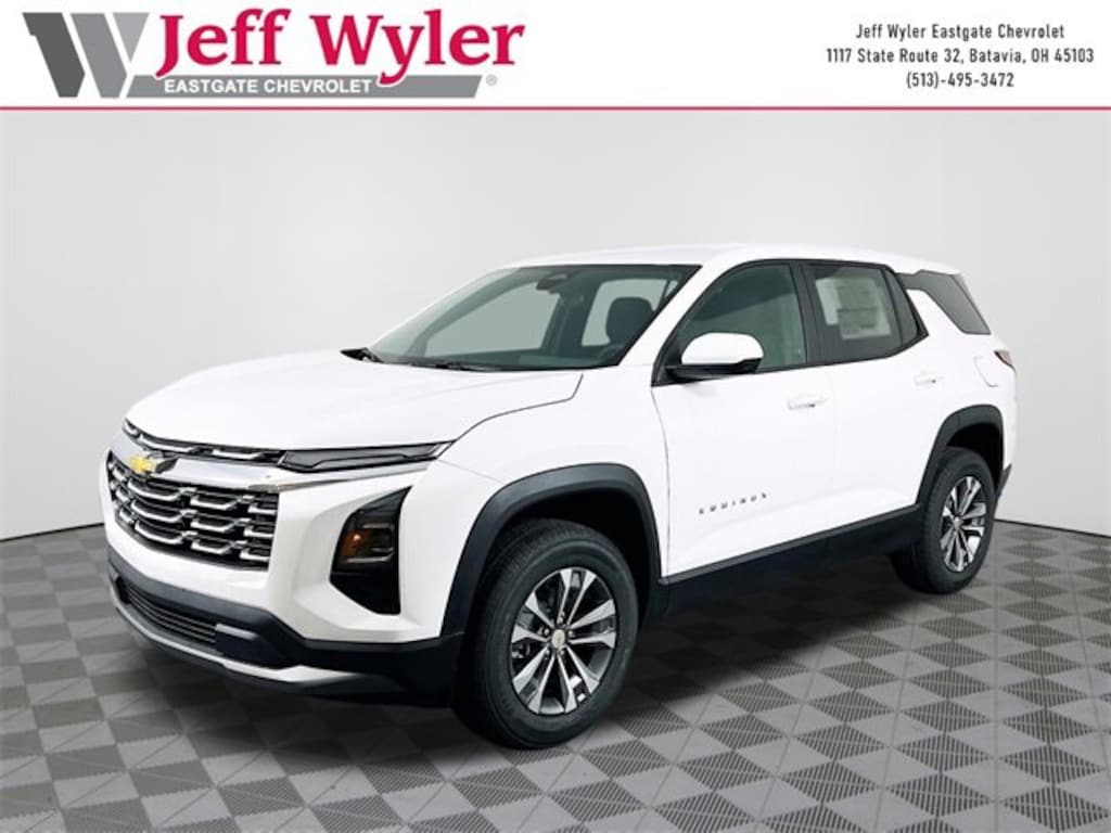 Summit White 2026 Chevrolet Equinox LT 1.5L DOHC FWD CVT 26/29 City/Highway MPG Jeff Wyler Eastgate Auto Mall is very proud to offer this fantastic 2026 Chevrolet Equinox LT in Summit White. Well equipped with: Preferred Equipment Group 1LT, 4-Wheel Disc Brakes, 5.81 Final Drive Axle Ratio, 6 Speakers, ABS brakes, Air Conditioning, All-Weather Floor Liners, Alloy wheels, AM/FM radio: SiriusXM, Auto High-beam Headlights, Brake assist, Bumpers: body-color, Cloth Seat Trim, Compass, Delay-off headlights, Driver 6-Way Manual Seat Adjuster, Driver door bin, Driver vanity mirror, Dual front impact airbags, Dual front side impact airbags, Electronic Stability Control, Emergency communication system: OnStar and Chevrolet connected services capable, Four wheel independent suspension, Front anti-roll bar, Front Bucket Seats, Front Center Armrest, Front Passenger 4-Way Manual Seat Adjuster, Front reading lights, Fully automatic headlights, Heated door mirrors, Heated Driver and Front Passenger Seats, Heated front seats, Heated steering wheel, Illuminated entry, Low tire pressure warning, Navigation System, Occupant sensing airbag, Outside temperature display, Overhead airbag, Overhead console, Panic alarm, Passenger door bin, Passenger vanity mirror, Power door mirrors, Power steering, Power windows, Premium audio system: Chevrolet Infotainment 3, Radio data system, Radio: 11.3 Diagonal Advanced Color LCD Display, Rear anti-roll bar, Rear reading lights, Rear seat center armrest, Rear window defroster, Rear window wiper, Remote keyless entry, Second Row All-Weather Mat, Security system, SiriusXM with 360L Trial Subscription, Speed control, Speed-sensing steering, Split folding rear seat, Spoiler, Steering wheel mounted audio controls, Tachometer, Telescoping steering wheel, Tilt steering wheel, Traction control, Trip computer, Variably intermittent wipers, and Wheels: 17 Grazen Metallic Machined-Face Aluminum. 26/29 City/Highway MPG