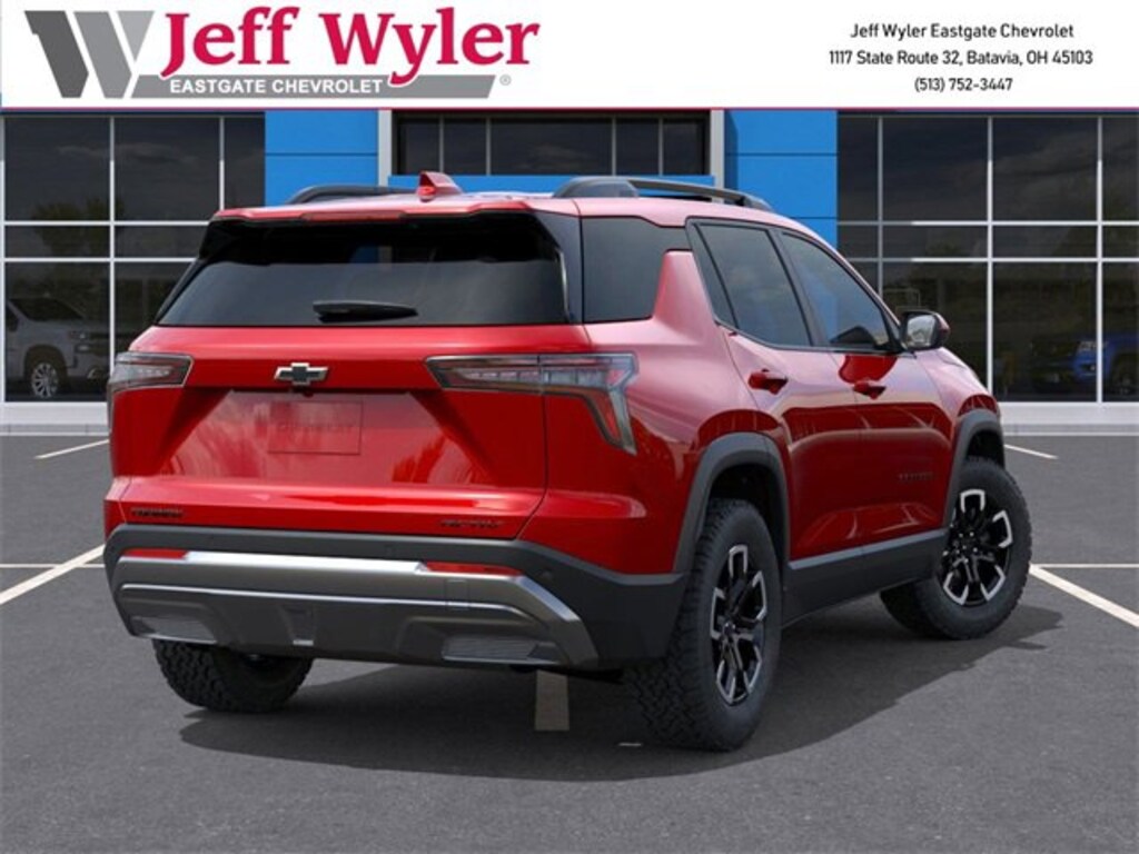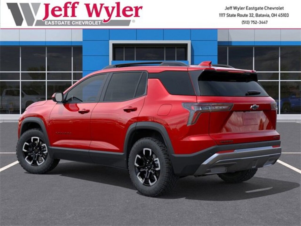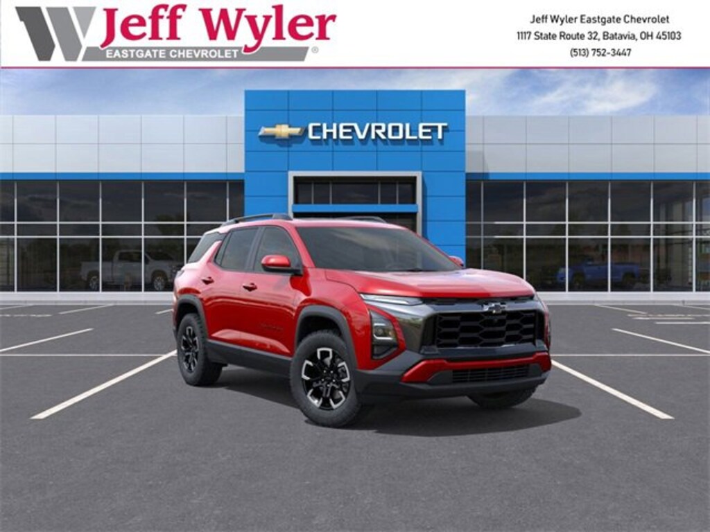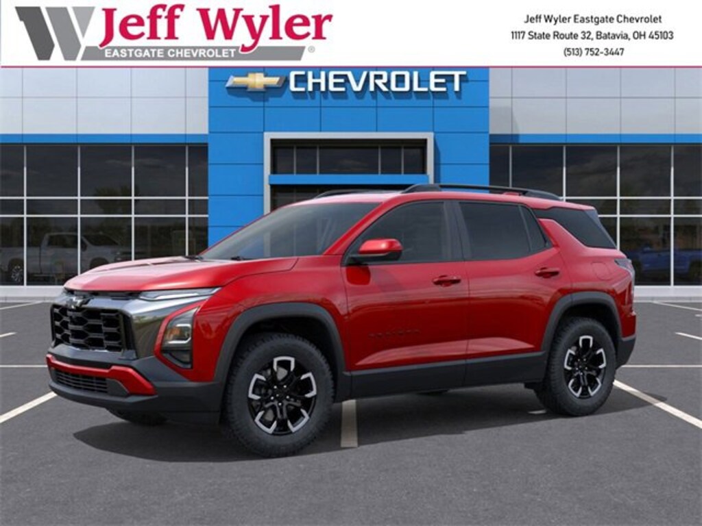 Radiant Red Tintcoat 2026 Chevrolet Equinox ACTIV 1.5L DOHC AWD 8-Speed Automatic 24/29 City/Highway MPG Jeff Wyler Eastgate Auto Mall is proud to offer this outstanding 2026 Chevrolet Equinox ACTIV in Radiant Red Tintcoat. Well equipped with: Convenience Package III (Front Passenger 2-Way Power Lumbar Seat Adjuster, Front Passenger 8-Way Power Seat Adjuster, Heated Rear Outboard Seating Positions, Memory Settings, Ventilated Driver Seat, and Ventilated Front Passenger Seat), 2-Way Power Driver Lumbar Control Seat Adjuster, 3.47 Final Drive Axle Ratio, 4-Wheel Disc Brakes, 6 Speakers, ABS brakes, Air Conditioning, Alloy wheels, AM/FM radio: SiriusXM, Auto High-beam Headlights, Automatic temperature control, Brake assist, Bumpers: body-color, Compass, Delay-off headlights, Driver 8-Way Power Seat Adjuster, Driver door bin, Driver vanity mirror, Dual front impact airbags, Dual front side impact airbags, Electronic Stability Control, Emergency communication system: OnStar and Chevrolet connected services capable, Four wheel independent suspension, Front anti-roll bar, Front Bucket Seats, Front Center Armrest, Front dual zone A/C, Front Passenger 4-Way Manual Seat Adjuster, Front reading lights, Fully automatic headlights, Garage door transmitter, Heated door mirrors, Heated Driver & Front Passenger Seats, Heated front seats, Heated steering wheel, Illuminated entry, Low tire pressure warning, Navigation System, Occupant sensing airbag, Outside temperature display, Overhead airbag, Overhead console, Panic alarm, Passenger door bin, Passenger vanity mirror, Power door mirrors, Power driver seat, Power Dual Glass Panoramic Sliding Sunroof, Power Liftgate, Power steering, Power windows, Premium audio system: Chevrolet Infotainment 3 Plus, Radio data system, Radio: 11.3 Diagonal Advanced Color LCD Display, Rain sensing wipers, Rear anti-roll bar, Rear reading lights, Rear seat center armrest, Rear window defroster, Rear window wiper, Remote keyless entry, Security system, SiriusXM w/360L Trial Subscription, Speed control, Speed-sensing steering, Split folding rear seat, Spoiler, Steering wheel mounted audio controls, Sueded Microfiber Seat Trim, Tachometer, Telescoping steering wheel, Tilt steering wheel, Traction control, Trip computer, Variably intermittent wipers, and Wheels: 17 Dark Android Machined-Face Aluminum. 24/29 City/Highway MPG