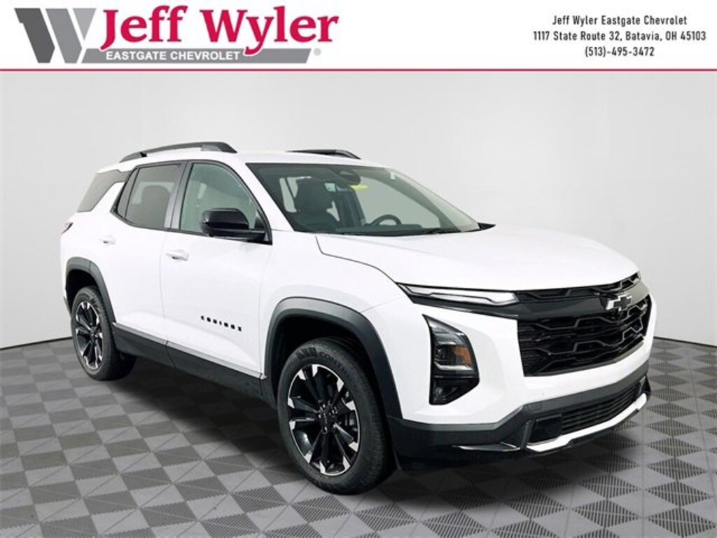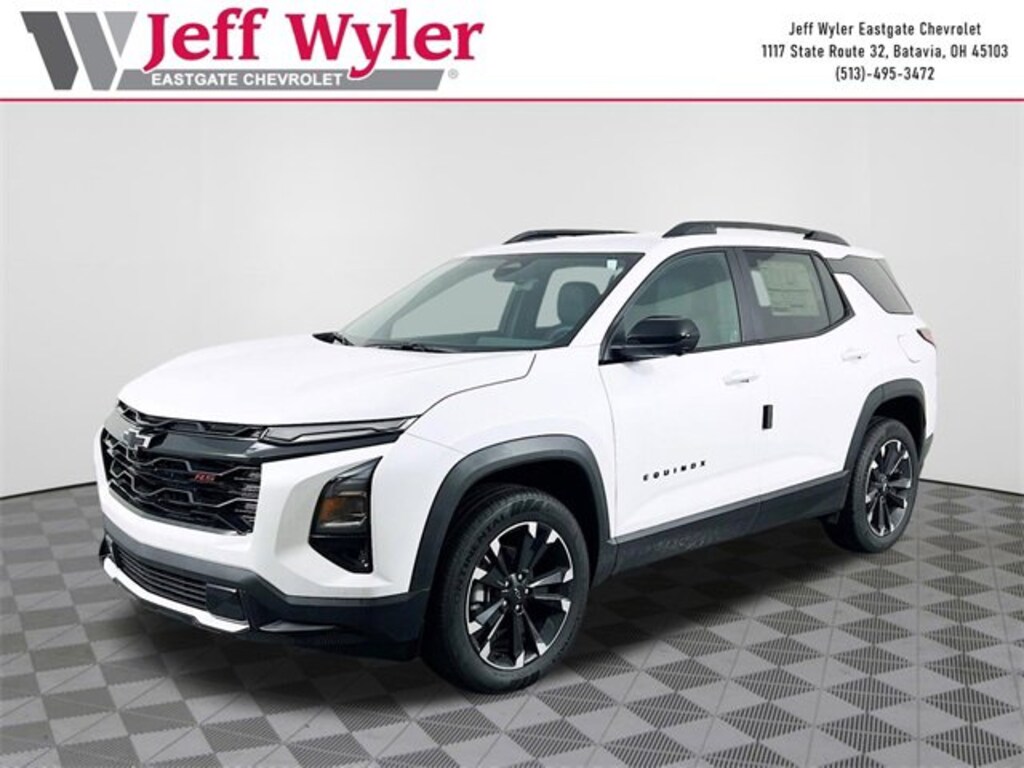 Polar White Tricoat 2026 Chevrolet Equinox RS 1.5L DOHC FWD CVT 26/29 City/Highway MPG Jeff Wyler Eastgate Auto Mall is honored to offer this good-looking 2026 Chevrolet Equinox RS in Polar White Tricoat. Well equipped with: Convenience Package III (Front Passenger 2-Way Power Lumbar Seat Adjuster, Front Passenger 8-Way Power Seat Adjuster, Heated Rear Outboard Seating Positions, Memory Settings, Ventilated Driver Seat, and Ventilated Front Passenger Seat), Floor Liner Package (All-Weather Floor Liners, Cargo Mat, and Second Row All-Weather Mat), Preferred Equipment Group 1RS, Safety and Technology Package (Front Fog Lamps, HD Surround Vision, Rear Pedestrian Alert, and Traffic Sign Recognition), 2-Way Power Driver Lumbar Control Seat Adjuster, 4-Wheel Disc Brakes, 5.81 Final Drive Axle Ratio, 6 Speakers, ABS brakes, Air Conditioning, Alloy wheels, AM/FM radio: SiriusXM, Auto High-beam Headlights, Automatic temperature control, Brake assist, Bumpers: body-color, Compass, Delay-off headlights, Driver 8-Way Power Seat Adjuster, Driver door bin, Driver vanity mirror, Dual front impact airbags, Dual front side impact airbags, Electronic Stability Control, Emergency communication system: OnStar and Chevrolet connected services capable, Evotex Seat Trim, Four wheel independent suspension, Front anti-roll bar, Front Bucket Seats, Front Center Armrest, Front dual zone A/C, Front Passenger 4-Way Manual Seat Adjuster, Front reading lights, Fully automatic headlights, Garage door transmitter, Heated door mirrors, Heated Driver and Front Passenger Seats, Heated front seats, Heated steering wheel, Illuminated entry, Low tire pressure warning, Navigation System, Occupant sensing airbag, Outside temperature display, Overhead airbag, Overhead console, Panic alarm, Passenger door bin, Passenger vanity mirror, Power door mirrors, Power driver seat, Power Liftgate, Power steering, Power windows, Premium audio system: Chevrolet Infotainment 3, Radio data system, Radio: 11.3 Diagonal Advanced Color LCD Display, Rain sensing wipers, Rear anti-roll bar, Rear Camera Mirror Washer, Rear reading lights, Rear seat center armrest, Rear window defroster, Rear window wiper, Remote keyless entry, Security system, SiriusXM with 360L Trial Subscription, Speed control, Speed-sensing steering, Split folding rear seat, Spoiler, Sport steering wheel, Steering wheel mounted audio controls, Tachometer, Telescoping steering wheel, Tilt steering wheel, Traction control, Trip computer, Variably intermittent wipers, and Wheels: 19 Carbon Flash Metallic Aluminum. 26/29 City/Highway MPG