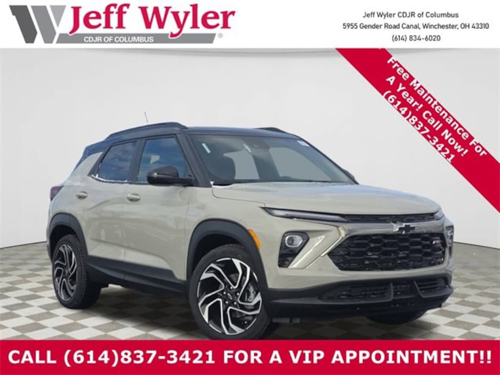 Jeff Wyler Columbus Auto Mall is proud to offer this handsome 2026 Chevrolet TrailBlazer RS in White Sands. Well equipped with: Convenience Package (1 Type-An and 1 Type-C USB Charging-Only Ports, 120-Volt Power Outlet, Cabin Humidity Sensor, Driver and Front Passenger Illuminated Vanity Mirrors, Hands Free Power Programmable Liftgate, Inside Rear-View Auto-Dimming Mirror, Single-Zone Automatic Climate Control, and Wireless Charging), Driver Confidence Package (Lane Change Alert with Side Blind Zone Alert, Rear Cross Traffic Alert, and Rear Park Assist), Preferred Equipment Group 1RS, 1 Type-An and 1 Type-C USB Ports, 2-Way Power Driver Lumbar Seat Adjuster, 4-Way Manual Front Passenger Seat Adjuster, 4-Wheel Disc Brakes, 5.45 Final Drive Axle Ratio, 6 Speakers, 8-Way Power Driver Seat Adjuster, ABS brakes, Air Conditioning, Alloy wheels, AM/FM radio: SiriusXM, Auto High-beam Headlights, Brake assist, Bumpers: body-color, Compass, Delay-off headlights, Driver door bin, Driver vanity mirror, Dual front impact airbags, Dual front side impact airbags, Dual-Pane Panoramic Power Sunroof, Electronic Stability Control, Emergency communication system: OnStar and Chevrolet connected services capable, Enhanced Performance 6-Speaker Audio System, Evotex Seat Trim, Exterior Parking Camera Rear, Flat-Folding Front Passenger Seatback, Front anti-roll bar, Front Bucket Seats, Front Center Armrest, Front reading lights, Front wheel independent suspension, Fully automatic headlights, Heated door mirrors, Heated Driver and Front Passenger Seats, Heated front seats, Heated steering wheel, Illuminated entry, Knee airbag, Low tire pressure warning, Mosaic Black Metallic Two-Tone Roof, Occupant sensing airbag, Overhead airbag, Overhead console, Panic alarm, Passenger door bin, Passenger vanity mirror, Power door mirrors, Power driver seat, Power steering, Power windows, Radio data system, Radio: AM/FM Stereo Audio System, Rear seat center armrest, Rear side impact airbag, Rear window defroster, Rear window wiper, Remote keyless entry, Ride and Handling Suspension, Security system, SiriusXM Trial Subscription, Speed control, Split folding rear seat, Spoiler, Steering wheel mounted audio controls, Tachometer, Telescoping steering wheel, Tilt steering wheel, Traction control, Trip computer, Variably intermittent wipers, Wheels: 19 High Gloss Black Machined Aluminum, and Wireless Apple CarPlay/Android Auto. 29/33 City/Highway MPG