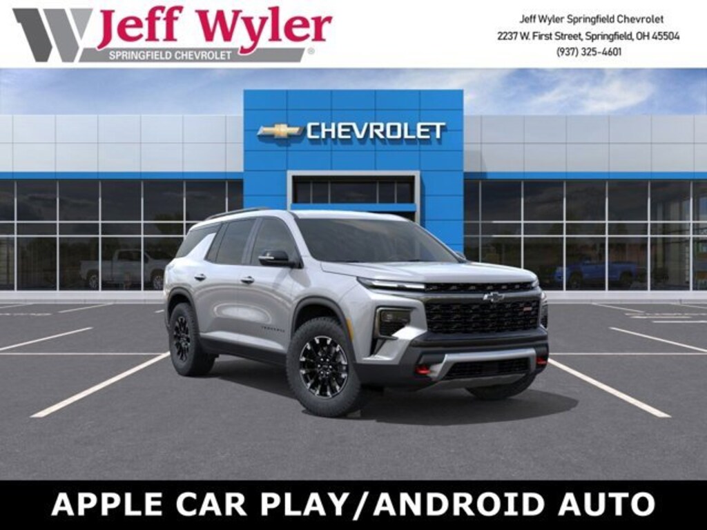 Jeff Wyler Springfield Auto Mall is delighted to offer this wonderful-looking 2026 Chevrolet Traverse Z71 in Sterling Gray Metallic. Well equipped with: 3rd row seats: split-bench, 4-Way Manual Front Passenger Seat Adjuster, 4-Wheel Disc Brakes, 6 Speakers, 6-Speaker Audio System Feature, 8-Way Power Driver Seat Adjuster, ABS brakes, Air Conditioning, Alloy wheels, AM/FM radio: SiriusXM with 360L, Apple CarPlay/Android Auto, Auto High-beam Headlights, Automatic temperature control, Brake assist, Child-Seat-Sensing Airbag, Compass, Delay-off headlights, Driver door bin, Driver vanity mirror, Dual front impact airbags, Dual front side impact airbags, Electronic Stability Control, Emergency communication system: OnStar, Evotex Seat Trim, Four wheel independent suspension, Front anti-roll bar, Front Bucket Seats, Front Center Armrest, Front dual zone A/C, Front reading lights, Fully automatic headlights, Heated door mirrors, Heated Driver & Front Passenger Seats, Heated front seats, Heated steering wheel, Illuminated entry, Low tire pressure warning, Navigation System, Occupant sensing airbag, Outside temperature display, Overhead airbag, Overhead console, Panic alarm, Passenger door bin, Passenger vanity mirror, Power door mirrors, Power driver seat, Power Liftgate, Power steering, Power windows, Radio data system, Radio: Audio System w/17.7 Diagonal Display, Rear air conditioning, Rear anti-roll bar, Rear reading lights, Rear window defroster, Rear window wiper, Remote keyless entry, Security system, SiriusXM w/360L Trial Subscription, Speed control, Speed-sensing steering, Spoiler, Steering wheel mounted audio controls, Tachometer, Telescoping steering wheel, Tilt steering wheel, Traction control, Trip computer, Turn signal indicator mirrors, Variably intermittent wipers, Voltmeter, and Wheels: 18 High Gloss Black Painted Aluminum. 19/24 City/Highway MPGWyler Family First Package Includes: NanoCure Appearance Protection: Exterior & Interior Chemical Sealant Applied to Protect Against Environmental Hazards (7 Year Warranty Coverage). Pulse- Rear end Collision Avoidance System Theft Deterrent Strategy gives you 5 Years of Coverage against vehicle Theft, Offering up to a $5,000 benefit.