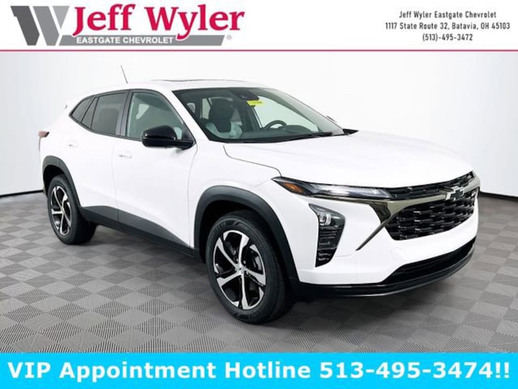 Summit White 2026 Chevrolet Trax 1RS ECOTEC 1.2L Turbo FWD 6-Speed Automatic 28/32 City/Highway MPG Jeff Wyler Eastgate Auto Mall is proud to offer this good-looking 2026 Chevrolet Trax 1RS in Summit White. Well equipped with: Driver Confidence Package (Lane Change Alert with Side Blind Zone Alert, Rear Cross Traffic Alert, and Rear Park Assist), Preferred Equipment Group 1RS, Sunroof Package (Power Sliding Glass Sunroof with Manual Shade), 2-Way Adjustable Front Head Restraints, 3.50 Final Drive Axle Ratio, 4 Speakers, 4-Speaker Audio System Feature, 4-Way Manual Front Passenger Seat Adjuster, 4-Wheel Disc Brakes, 6-Way Manual Driver Seat Adjuster, ABS brakes, Air Conditioning, Alloy wheels, AM/FM radio: SiriusXM, Auto High-beam Headlights, Brake assist, Bumpers: body-color, Cloth Seat Trim, Compass, Delay-off headlights, Driver door bin, Driver vanity mirror, Dual front impact airbags, Dual front side impact airbags, Electronic Stability Control, Emergency communication system: OnStar One Essentials, Exterior Parking Camera Rear, Front anti-roll bar, Front Bucket Seats, Front Center Armrest, Front reading lights, Front wheel independent suspension, Fully automatic headlights, Heated door mirrors, Heated Driver and Front Passenger Seats, Heated front seats, Heated steering wheel, Illuminated entry, Leather steering wheel, Low tire pressure warning, Occupant sensing airbag, Outside temperature display, Overhead airbag, Overhead console, Panic alarm, Passenger door bin, Passenger vanity mirror, Power door mirrors, Power steering, Power windows, Premium audio system: Chevrolet Infotainment 3, Radio data system, Radio: Chevrolet Infotainment 3 System with AM/FM, Rear window defroster, Rear window wiper, Remote keyless entry, Security system, SiriusXM Trial Subscription, Speed control, Split folding rear seat, Spoiler, Sport steering wheel, Steering wheel mounted audio controls, Tachometer, Telescoping steering wheel, Tilt steering wheel, Traction control, Trip computer, Variably intermittent wipers, Wheels: 18 Black-Painted Machined Aluminum, and Wireless Apple CarPlay/Wireless Android Auto. 28/32 City/Highway MPG Awards: