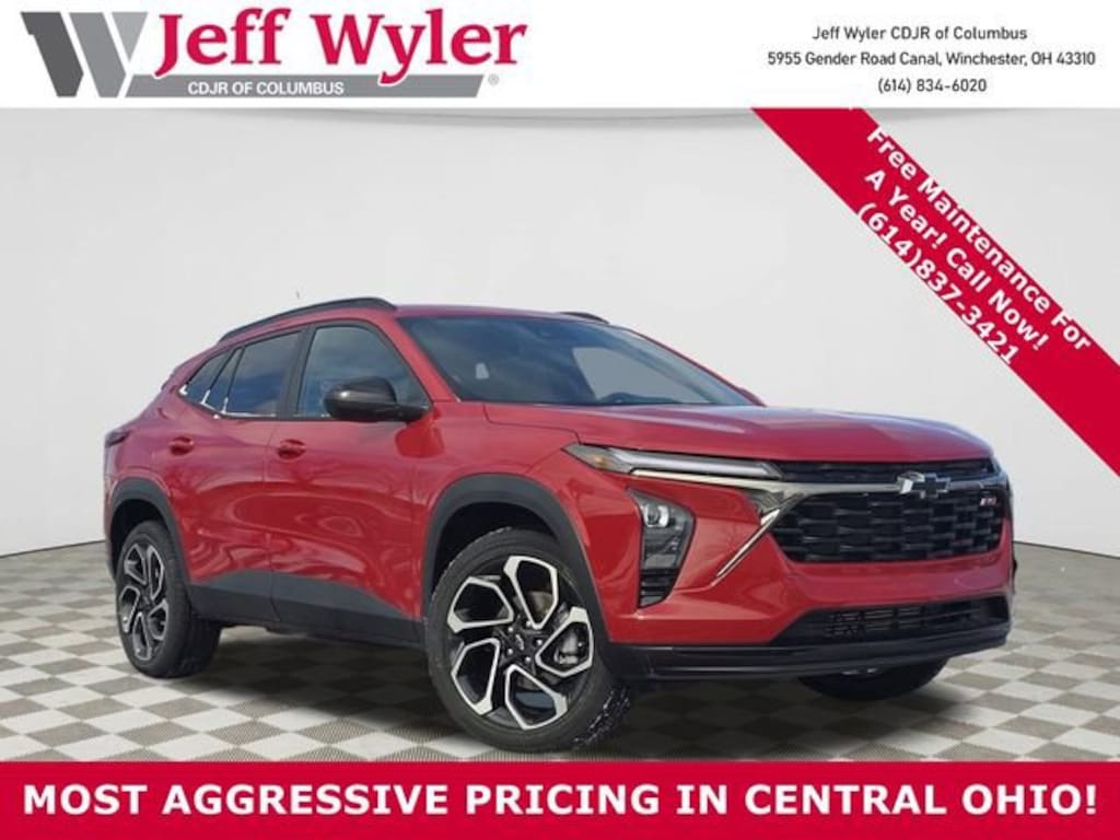 Jeff Wyler Columbus Auto Mall is excited to offer this terrific 2026 Chevrolet Trax 2RS in Apex Red. Well equipped with: Driver Confidence Package (Adaptive Cruise Control, Lane Change Alert with Side Blind Zone Alert, Rear Cross Traffic Alert, and Rear Park Assist), Interior Protection Package (Front and Rear Jet Black All-Weather Floor Liners and Jet Black Cargo Liner), Preferred Equipment Group 2RS, 2-Way Adjustable Front Head Restraints, 2-Way Power Driver Lumbar Seat Adjuster, 3.50 Final Drive Axle Ratio, 4-Way Manual Front Passenger Seat Adjuster, 4-Wheel Disc Brakes, 6 Speakers, 6-Speaker Audio System Feature, 8-Way Power Driver Seat Adjuster, ABS brakes, Air Conditioning, Alloy wheels, AM/FM radio: SiriusXM, Auto High-beam Headlights, Automatic temperature control, Brake assist, Bumpers: body-color, Compass, Delay-off headlights, Driver door bin, Driver vanity mirror, Dual front impact airbags, Dual front side impact airbags, Electronic Stability Control, Emergency communication system: OnStar One Essentials, Evotex Seat Trim, Exterior Parking Camera Rear, Front anti-roll bar, Front Bucket Seats, Front Center Armrest, Front reading lights, Front wheel independent suspension, Fully automatic headlights, Heated door mirrors, Heated Driver and Front Passenger Seats, Heated front seats, Heated steering wheel, Illuminated entry, Leather steering wheel, Low tire pressure warning, Occupant sensing airbag, Outside temperature display, Overhead airbag, Overhead console, Panic alarm, Passenger door bin, Passenger vanity mirror, Power door mirrors, Power driver seat, Power steering, Power windows, Premium audio system: Chevrolet Infotainment 3, Radio data system, Radio: AM/FM Stereo Audio System, Rear window defroster, Rear window wiper, Remote keyless entry, Security system, SiriusXM Trial Subscription, Speed control, Split folding rear seat, Spoiler, Sport steering wheel, Steering wheel mounted audio controls, Tachometer, Telescoping steering wheel, Tilt steering wheel, Traction control, Trip computer, Variably intermittent wipers, Wheels: 19 Black-Painted Machined Aluminum, and Wireless Apple CarPlay/Wireless Android Auto. 28/32 City/Highway MPG