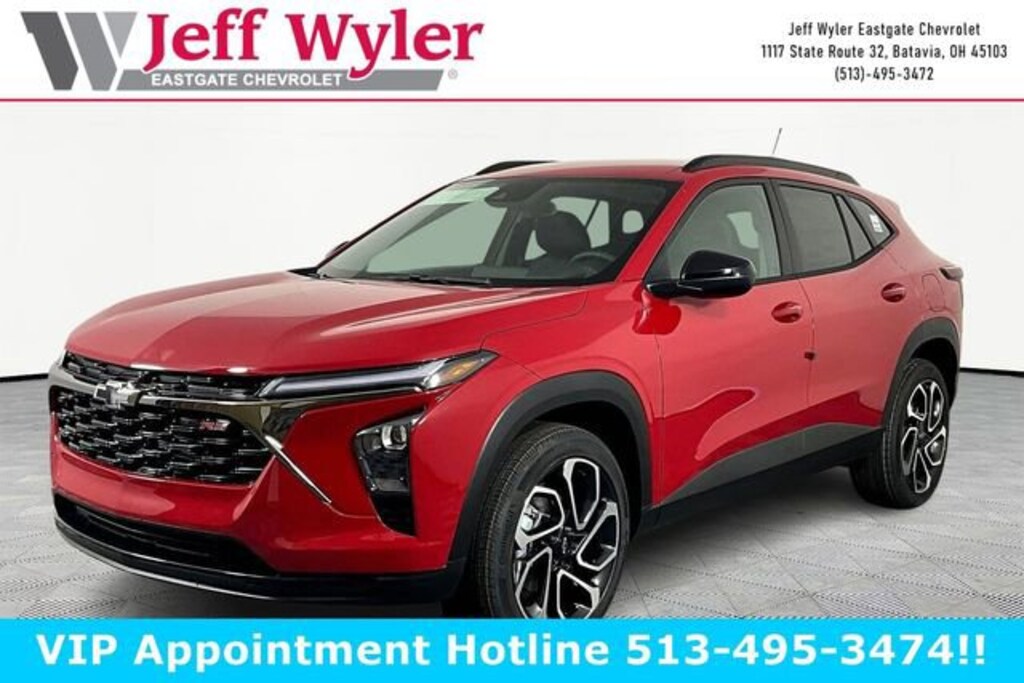 Priced below KBB Fair Purchase Price! Apex Red 2026 Chevrolet Trax 2RS ECOTEC 1.2L Turbo FWD 6-Speed Automatic 28/32 City/Highway MPG Jeff Wyler Eastgate Auto Mall is excited to offer this fantastic 2026 Chevrolet Trax 2RS in Apex Red. Well equipped with: Preferred Equipment Group 2RS, 2-Way Adjustable Front Head Restraints, 2-Way Power Driver Lumbar Seat Adjuster, 3.50 Final Drive Axle Ratio, 4-Way Manual Front Passenger Seat Adjuster, 4-Wheel Disc Brakes, 6 Speakers, 6-Speaker Audio System Feature, 8-Way Power Driver Seat Adjuster, ABS brakes, Air Conditioning, Alloy wheels, AM/FM radio: SiriusXM, Auto High-beam Headlights, Automatic temperature control, Brake assist, Bumpers: body-color, Compass, Delay-off headlights, Driver door bin, Driver vanity mirror, Dual front impact airbags, Dual front side impact airbags, Electronic Stability Control, Emergency communication system: OnStar One Essentials, Evotex Seat Trim, Exterior Parking Camera Rear, Front anti-roll bar, Front Bucket Seats, Front Center Armrest, Front reading lights, Front wheel independent suspension, Fully automatic headlights, Heated door mirrors, Heated Driver and Front Passenger Seats, Heated front seats, Heated steering wheel, Illuminated entry, Leather steering wheel, Low tire pressure warning, Occupant sensing airbag, Outside temperature display, Overhead airbag, Overhead console, Panic alarm, Passenger door bin, Passenger vanity mirror, Power door mirrors, Power driver seat, Power steering, Power windows, Premium audio system: Chevrolet Infotainment 3, Radio data system, Radio: AM/FM Stereo Audio System, Rear window defroster, Rear window wiper, Remote keyless entry, Security system, SiriusXM Trial Subscription, Speed control, Split folding rear seat, Spoiler, Sport steering wheel, Steering wheel mounted audio controls, Tachometer, Telescoping steering wheel, Tilt steering wheel, Traction control, Trip computer, Variably intermittent wipers, Wheels: 19 Black-Painted Machined Aluminum, and Wireless Apple CarPlay/Wireless Android Auto. 28/32 City/Highway MPG Awards:* Car and Driver 10 Best Trucks and SUVs Car and Driver Editors' ChoiceCar and Driver, January 2017. Price includes: $500 - Chevrolet Consumer Cash Program. Exp. 04/30/2026