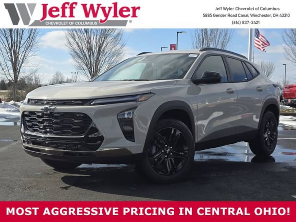 Jeff Wyler Columbus Auto Mall is honored to offer this handsome 2026 Chevrolet Trax ACTIV in White Sands. Well equipped with: Driver Confidence Package (Adaptive Cruise Control, Lane Change Alert with Side Blind Zone Alert, Rear Cross Traffic Alert, and Rear Park Assist), Interior Protection Package (Front and Rear Jet Black All-Weather Floor Liners and Jet Black Cargo Liner), 2-Way Adjustable Front Head Restraints, 2-Way Power Driver Lumbar Seat Adjuster, 3.50 Final Drive Axle Ratio, 4-Way Manual Front Passenger Seat Adjuster, 4-Wheel Disc Brakes, 6 Speakers, 6-Speaker Audio System Feature, 8-Way Power Driver Seat Adjuster, ABS brakes, Air Conditioning, Alloy wheels, AM/FM radio: SiriusXM, Auto High-beam Headlights, Automatic temperature control, Brake assist, Bumpers: body-color, Compass, Delay-off headlights, Driver door bin, Driver vanity mirror, Dual front impact airbags, Dual front side impact airbags, Electronic Stability Control, Emergency communication system: OnStar One Essentials, Evotex Seat Trim, Exterior Parking Camera Rear, Front anti-roll bar, Front Bucket Seats, Front Center Armrest, Front reading lights, Front wheel independent suspension, Fully automatic headlights, Heated door mirrors, Heated Driver and Front Passenger Seats, Heated front seats, Heated steering wheel, Illuminated entry, Leather steering wheel, Low tire pressure warning, Occupant sensing airbag, Outside temperature display, Overhead airbag, Overhead console, Panic alarm, Passenger door bin, Passenger vanity mirror, Power door mirrors, Power driver seat, Power steering, Power windows, Premium audio system: Chevrolet Infotainment 3, Radio data system, Radio: AM/FM Stereo Audio System, Rear window defroster, Rear window wiper, Remote keyless entry, Security system, SiriusXM Trial Subscription, Speed control, Split folding rear seat, Spoiler, Steering wheel mounted audio controls, Tachometer, Telescoping steering wheel, Tilt steering wheel, Traction control, Trip computer, Variably intermittent wipers, Wheels: 18 Black-Painted Aluminum, and Wireless Apple CarPlay/Wireless Android Auto. 28/32 City/Highway MPG