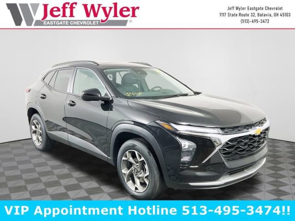Mosaic Black Metallic 2026 Chevrolet Trax LT ECOTEC 1.2L Turbo FWD 6-Speed Automatic 28/32 City/Highway MPG Jeff Wyler Eastgate Auto Mall is pleased to offer this fantastic 2026 Chevrolet Trax LT in Mosaic Black Metallic. Well equipped with: LT Convenience Package (Front Doors Keyless Open, Heated Driver and Front Passenger Seats, Heated Power-Adjustable Outside Mirrors, Heated Steering Wheel, and Wrapped Steering Wheel), Preferred Equipment Group 1LT, Sunroof Package (Power Sliding Glass Sunroof with Manual Shade and Wireless Charging), 2-Way Adjustable Front Head Restraints, 3.50 Final Drive Axle Ratio, 4-Way Manual Front Passenger Seat Adjuster, 4-Wheel Disc Brakes, 6 Speakers, 6-Speaker Audio System Feature, 6-Way Manual Driver Seat Adjuster, ABS brakes, Air Conditioning, Alloy wheels, AM/FM radio: SiriusXM, Auto High-beam Headlights, Automatic temperature control, Brake assist, Bumpers: body-color, Cloth/Evotex Seat Trim, Compass, Delay-off headlights, Driver door bin, Driver vanity mirror, Dual front impact airbags, Dual front side impact airbags, Electronic Stability Control, Emergency communication system: OnStar One Essentials, Exterior Parking Camera Rear, Front anti-roll bar, Front Bucket Seats, Front Center Armrest, Front reading lights, Front wheel independent suspension, Fully automatic headlights, Illuminated entry, Low tire pressure warning, Occupant sensing airbag, Outside temperature display, Overhead airbag, Overhead console, Panic alarm, Passenger door bin, Passenger vanity mirror, Power door mirrors, Power steering, Power windows, Premium audio system: Chevrolet Infotainment 3, Radio data system, Radio: AM/FM Stereo Audio System, Rear window defroster, Rear window wiper, Remote keyless entry, Security system, SiriusXM Trial Subscription, Speed control, Split folding rear seat, Spoiler, Steering wheel mounted audio controls, Tachometer, Telescoping steering wheel, Tilt steering wheel, Traction control, Trip computer, Variably intermittent wipers, Wheels: 17 Inch Gray-Painted Machined Aluminum Alloy, and Wireless Apple CarPlay/Wireless Android Auto. 28/32 City/Highway MPG Awards: