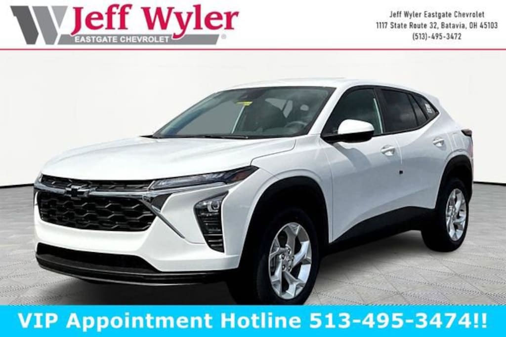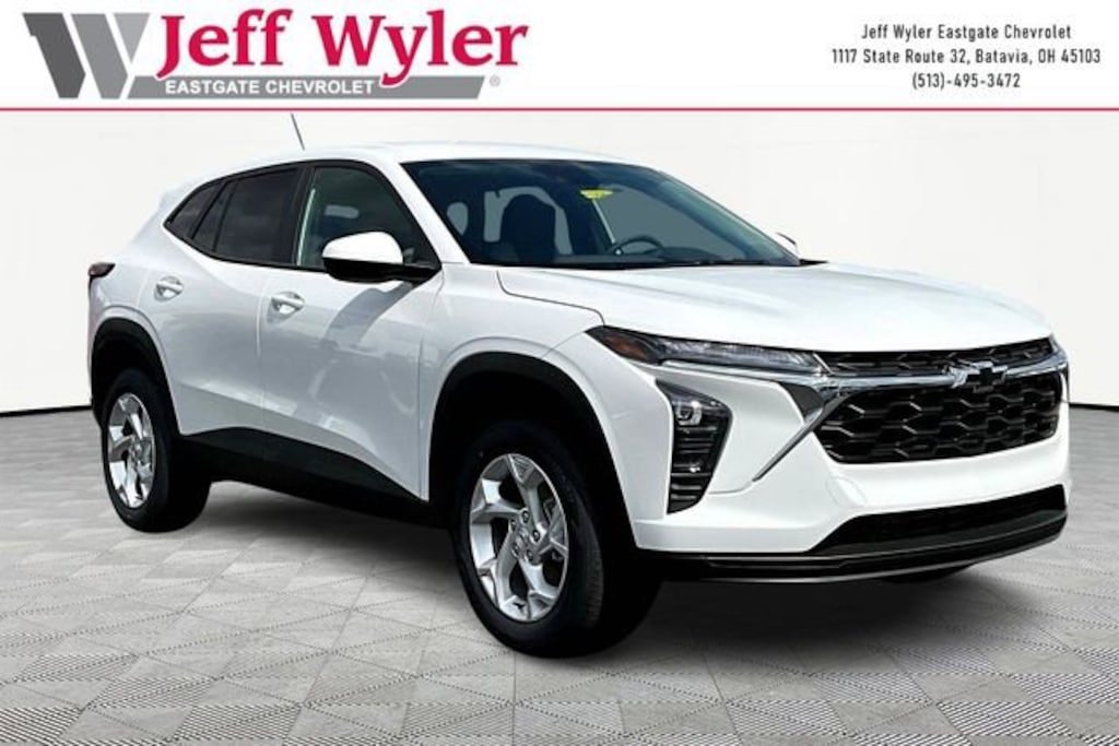 Summit White 2026 Chevrolet Trax LS ECOTEC 1.2L Turbo FWD 6-Speed Automatic 28/32 City/Highway MPG Jeff Wyler Eastgate Auto Mall is proud to offer this great 2026 Chevrolet Trax LS in Summit White. Well equipped with: Blackout Package (Black Nameplate, Front and Rear Black Bowtie Emblems, and Silver Wheel Center Caps with Black Bowtie), Driver Confidence Package (Lane Change Alert with Side Blind Zone Alert, Rear Cross Traffic Alert, and Rear Park Assist), LS Convenience Package (Body-Color Painted Mirror Caps, Carpeted Rear Floor Mats, Heated Driver and Front Passenger Seats, Heated Power-Adjustable Outside Mirrors, Remote Start, and Wheels: 17 Silver Painted Aluminum), Preferred Equipment Group 1LS, 2-Way Adjustable Front Head Restraints, 3.50 Final Drive Axle Ratio, 4 Speakers, 4-Speaker Audio System Feature, 4-Way Manual Front Passenger Seat Adjuster, 4-Wheel Disc Brakes, 6-Way Manual Driver Seat Adjuster, ABS brakes, Air Conditioning, AM/FM radio: SiriusXM, Auto High-beam Headlights, Brake assist, Bumpers: body-color, Cloth Seat Trim, Compass, Delay-off headlights, Driver door bin, Driver vanity mirror, Dual front impact airbags, Dual front side impact airbags, Electronic Stability Control, Emergency communication system: OnStar One Essentials, Exterior Parking Camera Rear, Front anti-roll bar, Front Bucket Seats, Front Center Armrest, Front reading lights, Front wheel independent suspension, Fully automatic headlights, Illuminated entry, Low tire pressure warning, Occupant sensing airbag, Outside temperature display, Overhead airbag, Overhead console, Panic alarm, Passenger door bin, Passenger vanity mirror, Power door mirrors, Power steering, Power windows, Premium audio system: Chevrolet Infotainment 3, Radio data system, Radio: Chevrolet Infotainment 3 System with AM/FM, Rear window defroster, Rear window wiper, Remote keyless entry, Security system, SiriusXM Trial Subscription, Speed control, Split folding rear seat, Spoiler, Steering wheel mounted audio controls, Tachometer, Telescoping steering wheel, Tilt steering wheel, Traction control, Trip computer, Variably intermittent wipers, Wheels: 17 Steel with Covers, and Wireless Apple CarPlay/Wireless Android Auto. 28/32 City/Highway MPG Awards: