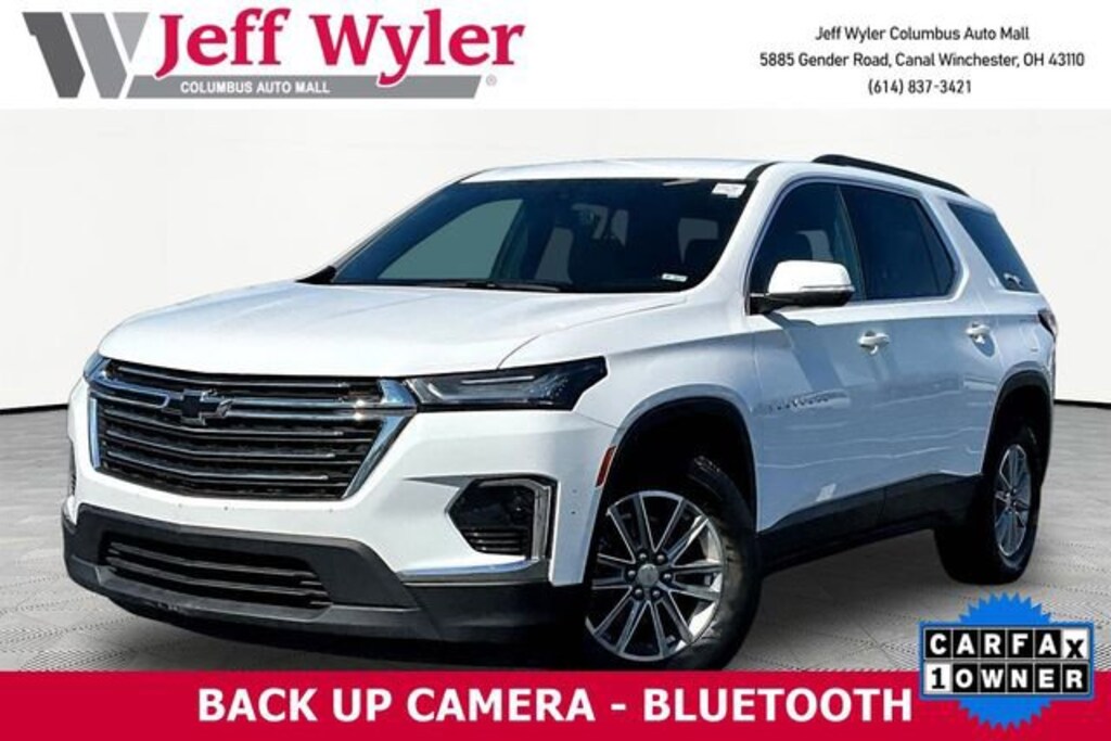 2023 Chevrolet Traverse Summit White 3.6L V6 SIDI VVT 9-Speed Automatic LT Leather AWD AWD. CARFAX One-Owner.